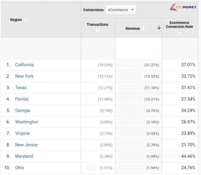 Посещают сайт в равном количестве как женщины, так и мужчины, но мужская аудитория из Калифорнии тратит на 10% больше, чем женская: