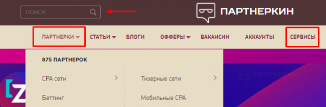 Заходим на наш сайт. Ищем нужную партнерку или сервис: