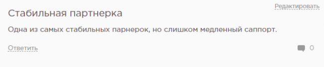 - Оставлять отзывы можно на любую партнерскую программу или сервис.
