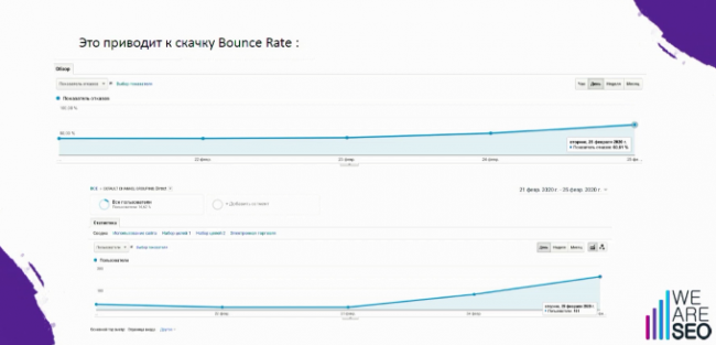 Если проанализировать поисковые запросы, то 25 февраля был пик, а 26 мы уже просели, причем упали не только высокочастотные, но и среднечастотные с низкочастотными. Это срабатывает буквально за 3 дня.