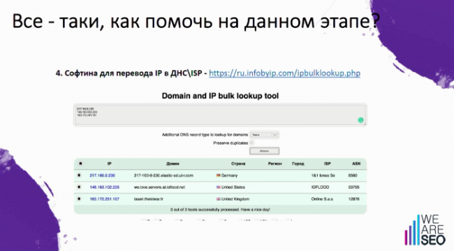 Используйте софт, с помощью которого вы можете перевести IP в ДНСISP интернет сервис-провайдера. Вводите IP и программа выдает вам домен. Ищем графу ISP, как правило, это название компании, которая предоставляет услуги прокси или VPN. Выявляем все подозрительные IP, проверяем на ISP и идем далее.