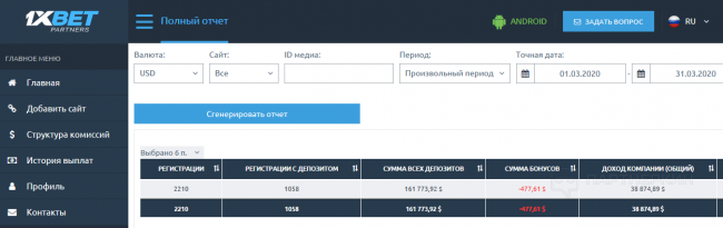 За март месяц (тогда еще у людей были деньги и они не сидели на карантине),также, проводились зарубежные футбольные чемпионаты, люди активно делали ставки на спорт. Сейчас доход немного просел, смотрите следующий скрин:
