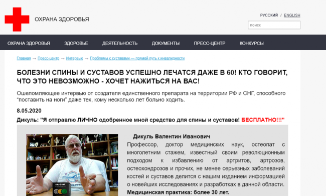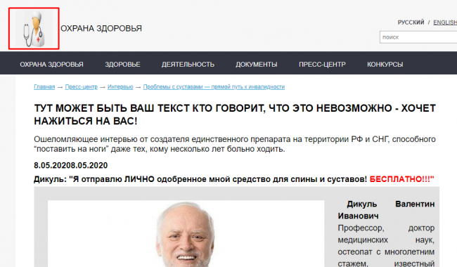 Одна из таких кнопок на сайте - охрана здоровья.