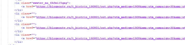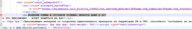 Под значением href мы видим чужую партнерскую ссылку, они расставлены по всему коду, при нажатии на любые кнопки сайта нас отправляют на основной лендинг.