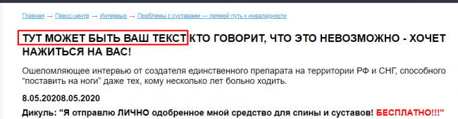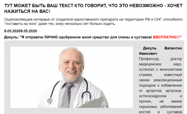 Возьмем за пример прелендинг, посвященный средству для спины и суставов:
