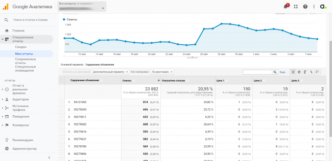 На основе данных можно построить два отчета в разрезе по креативам и по таргетингам: