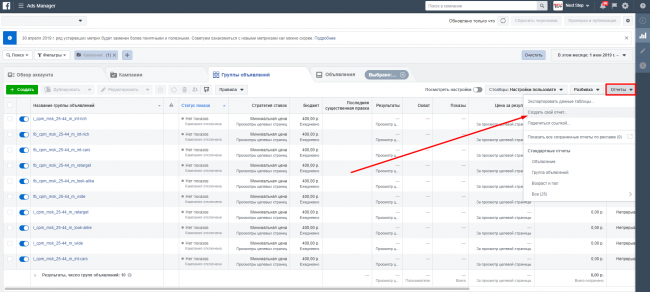 Если вы не используете их и у вас большое количество кампаний, то, к сожалению, отчет в разбивке по группам объявлений и объявлениям построить будет очень сложно. «ВКонтакте» и myTarget не позволяют делать выгрузки одновременно в разбивке по кампаниям, группам объявлений и объявлениям. Понадобится выгружать статистику по объявлениям из каждой группы вручную.