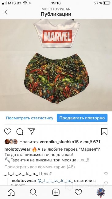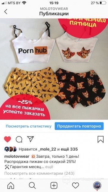 У меня 5-8 продаж с одного аккаунта. ВК и Инстаграм дают 10-15 продаж в день, когда идет реклама. В целом, около 150 пижам в месяц выходит. Вообще весь мой бизнес прозрачен, магазины в свободном доступе. Можно в Инстаграме посмотреть спрос и активность, все станет понятно.