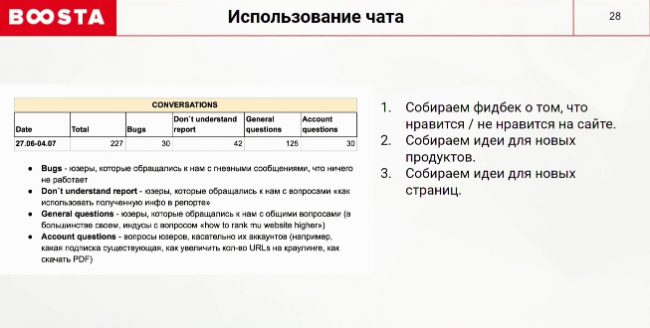 Первый трафик на сайт — это время начала работы с аудиторией. Установите чат, включите триггерные автосообщения и начинайте общаться с пользователями. Узнавайте, удовлетворяет ли их статья, что им нравится или не нравится на сайте. Собирайте идеи для новых продуктов и новых страниц. Может оказаться, что юзерам не хватает какого-то гайда. Это даст огромный толчок для роста и развития площадки.