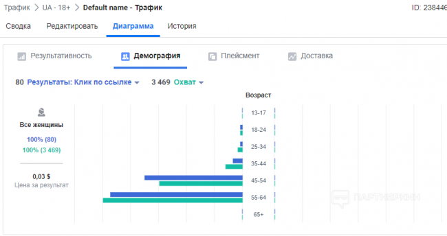 Как видим в этой нише, активная аудитория началась из 45 лет, хотя я думал что будет моложе, но повторюсь, все нужно тестировать.