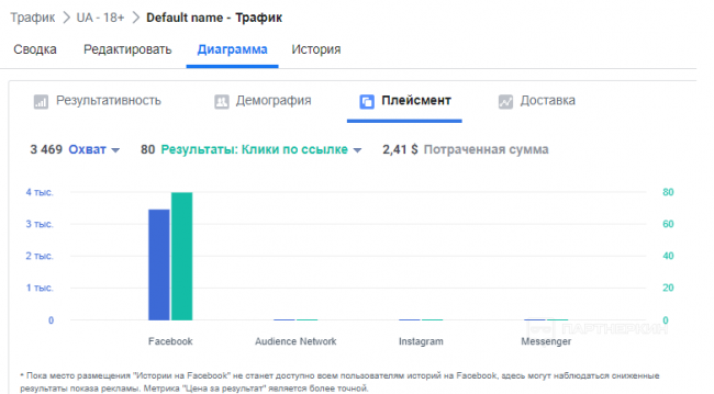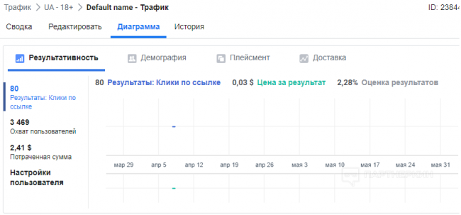 В целом тут смотреть нечего, было 80 кликов, охват 3,5к. Но самое главное - эксперимент удался, модерация пройдена, трафик запущен. Так что если вам говорят что такое модераторы блокируют, смело можете сбросить ссылку на этот пост. Хотя поняв что можно лить я это делать не стал. Все таки зарабатывать на этом я считаю аморально. Так что думайте и решайте сами, лить вам на это или нет.