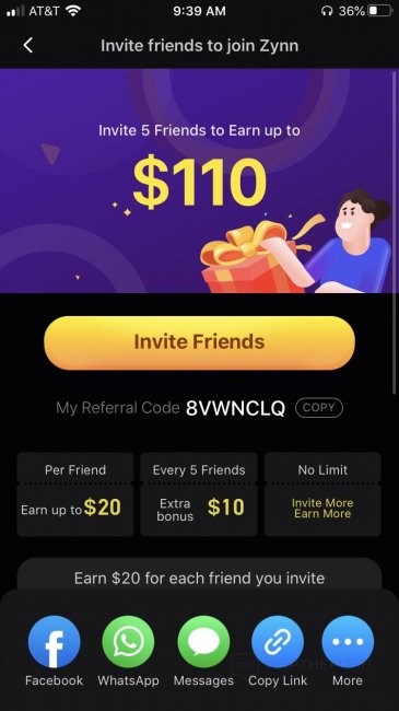 Если он приведет друга, то получит еще $20. За каждые пять приведенных пользователей приложение платит дополнительные $10.