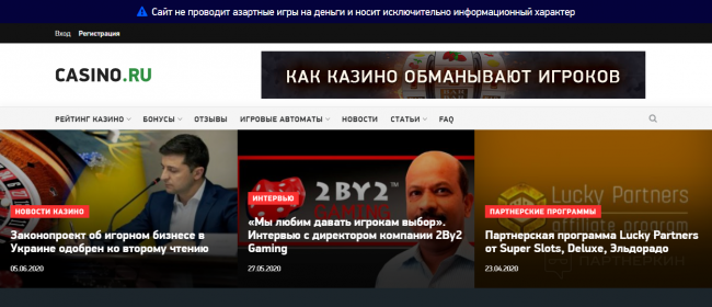 Casino.ru — яркий пример мимикрирующего сайта. Если внимательнее посмотреть на его контент, то он явно не рекламирует казино. Он информирует о них. Они так себя и позиционируют: энциклопедия. Да и зайдите на портал mail.ru. В разделе игр присутствуют игровые слоты. Налицо ещё один яркий пример, как легко обходится буква закона в России.
