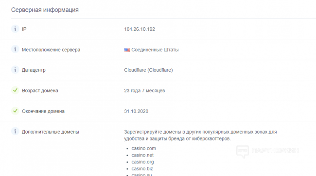 Если я не ошибаюсь, то со старым владельцем и контентом домен все-таки блокировали. Видимо, вкладывая условные $100-200 тысяч в заблокированный домен, новый владелец был уверен в своих силах и возможностях, которые позволили вытащить casino.ru из бана.