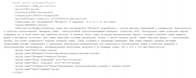 XML (или YML — стандарт Яндекса). Это текстовый файл, где категории, товары и их атрибуты перечислены в тегах. Такой формат используется чаще остальных, поэтому многие рекламные инструменты по умолчанию умеют с ним работать. Чаще всего данные для XML-фида выгружает сама CMS. Если появляются новые товары или меняются их характеристики, данные в фиде тоже обновятся с настроенной вами периодичностью.