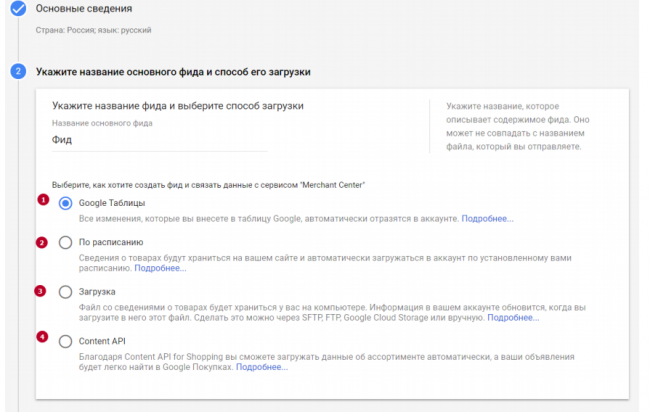 Интернет-магазины работают с Google Ads через специальный сервис — Google Merchant Center. Создайте аккаунт и выполните требования сервиса перед запуском кампании. Загрузить фид можно разными способами: