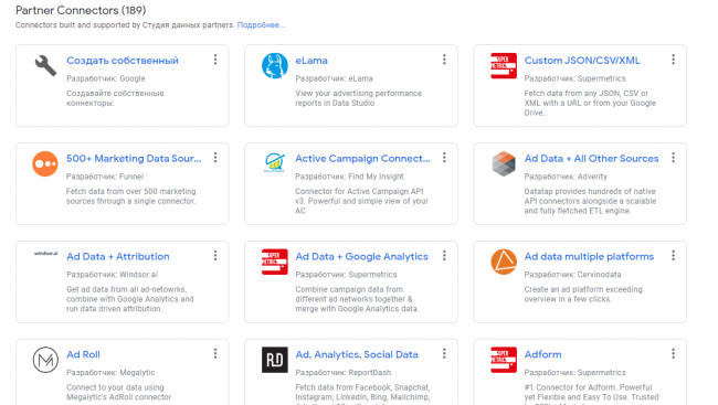 - Подключение коннекторов в Google Data Studio