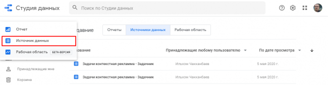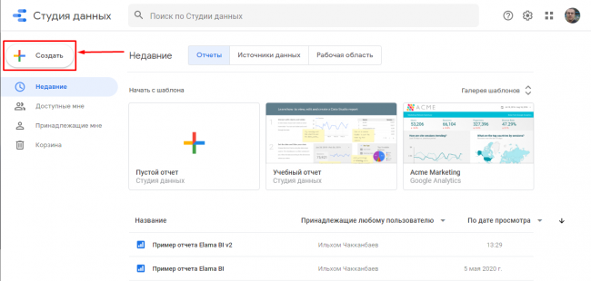 - Создание отчета в Data Studio