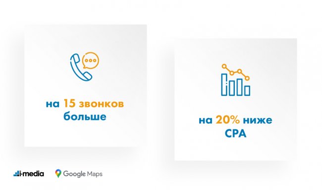 В итоге за месяц кампания в Картах принесла 15 дополнительных звонков. Их средняя стоимость была на 20% ниже по сравнению со звонками из кампаний на поиске и в КМС в целом. Кроме того, мы смогли отследить географическую локализацию наших пользователей в городе — эти данные мы использовали для повышающих корректировок в поисковых кампаниях.