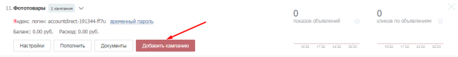 Добавьте кампанию. Для этого зайдите в список аккаунтов и нажмите «Добавить кампанию».