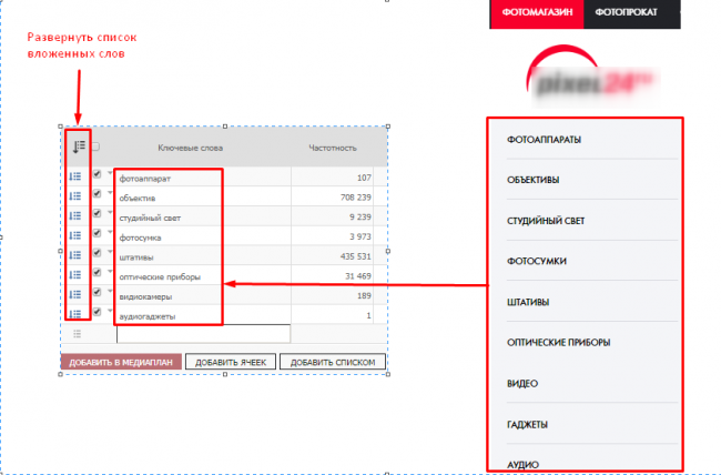 ✔Как собрать ключевые слова на примере <span style="white-space:nowrap;">интернет-магазина</span> фототехники — гайд Click.ru - «Заработок»