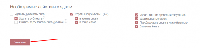 На данном этапе получен список ключевиков. Но некоторые из них повторяются. Чтобы не убирать дубли вручную, используйте нормализатор слов.