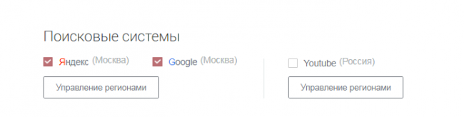 - Поисковая система. Можно выбрать обе поисковые системы или только Яндекс или Google.