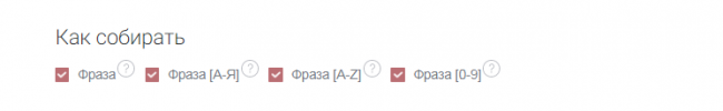 Парсер собирает подсказки по заданным фразам. Для получения расширенных результатов доступны такие опции:
