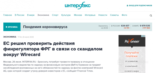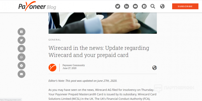 ✔Карты и счета Payoneer, Crypto и Paxum блокируются из-за банкротства Wirecard - «Надо знать»