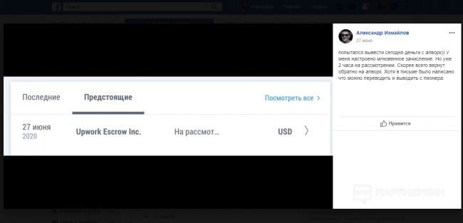 Upwork, пользователи которого активно пользуются Payoneer, разослала всем письма, где сообщается, что пользоваться картами этой системы нельзя. А выводить платежи стоит на банковские счета других организаций. Upwork в контакте с Payoneer работает над ситуацией, поэтому, видимо, и дублирует сведения с их ресурса. На сайте платформы есть еще небольшой дисклеймер по вопросу, правда, не решающий основную проблему — как выводить замороженные средства.