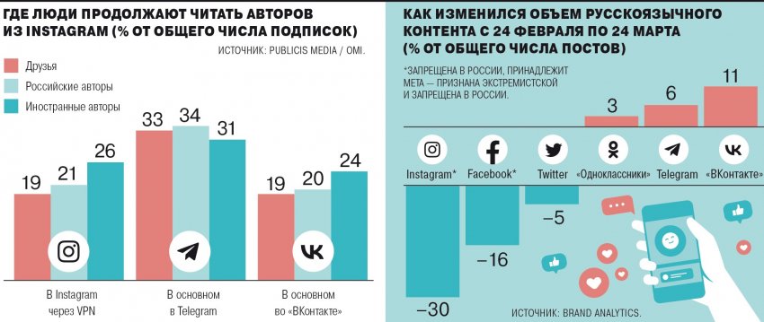 Однако как отмечают собеседники издания, после блокировки Instagram лишь 10-12% аудитории блогеров перешли за ними на другие площадки. Часть пользователей осталась на заблокированных платформах, используя VPN, но время пребывания в соцсетях заметно сократилось: все больше людей тратит там не более 5 минут.
