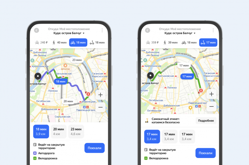 Как пишет Код Дурова, отдельные маршруты для велосипедов и самокатов появились в Яндекс.Картах еще в 2018 году. При этом они строятся в объезд лестниц и по велодорожкам, по возможности. Это помогает сделать поездку комфортнее и безопаснее.