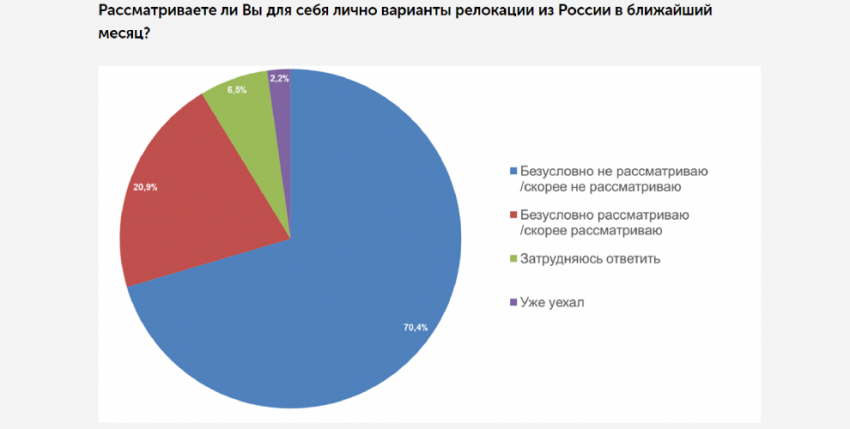 - Релокацию рассматривают 20,9% респондентов (в сравнении с маем, это число уменьшилось), а количество тех, кто уже уехал, сократилось до 2,2% в июне-августе (в мае – 4,4%).