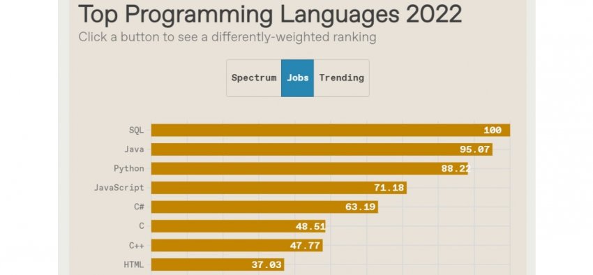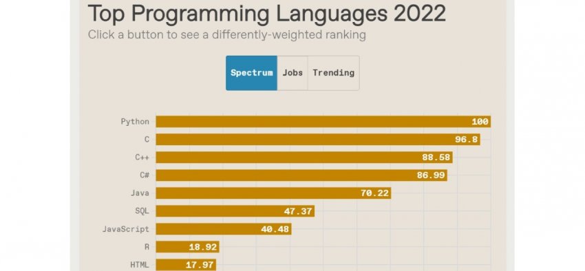 По данным IEEE Spectrum, Python остается лидирующим языком программирования в 2022 году, но работодатели считают знание только этого языка недостаточным фактором для найма.