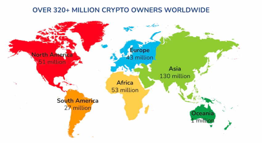 Распределение пользователей криптовалюты. Изображение: triple-a.io