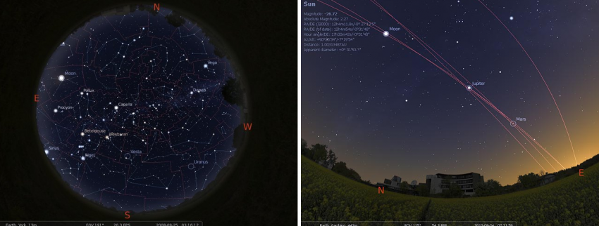 Stellarium 1.0 включает в себя базу данных из 600+ тыс. звезд и 80 тыс. космических объектов, также сведения о созвездиях и туманностях. По каждому дается небольшая справка, все объекты можно приближать и отдалять, а еще доступны 3D-визуализация и симуляция космических объектов при разных условиях наблюдения.