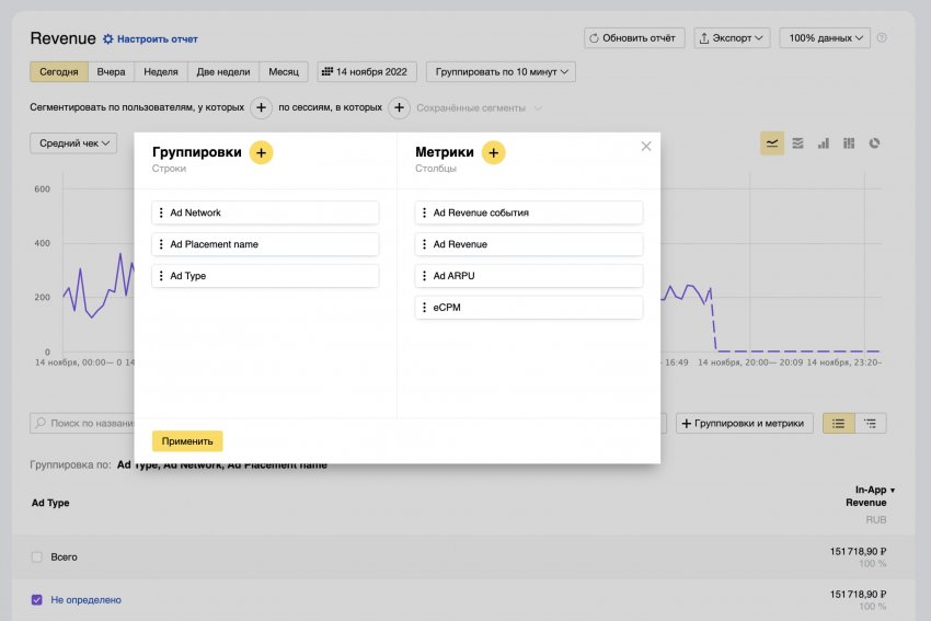 Новые показатели в отчете Revenue появились в сервисе AppMetrica