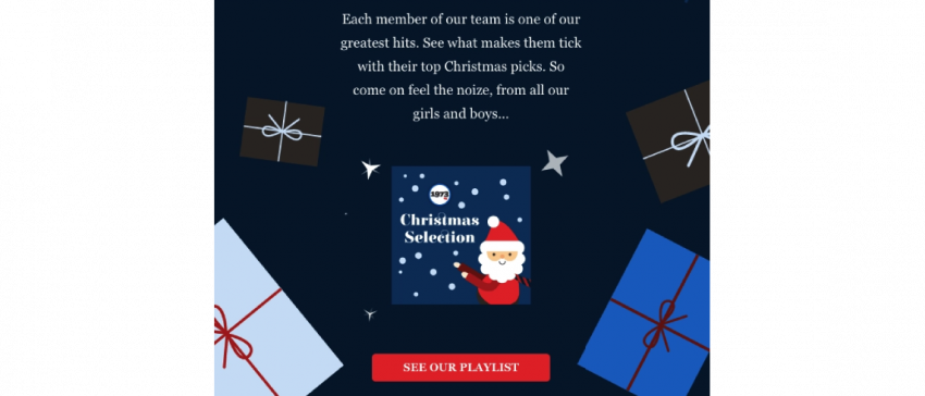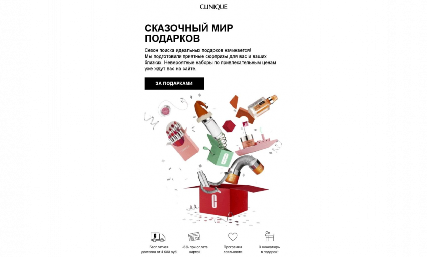 Одна из самых непраздничных рассылок в нашей подборке, однако фотографии с подарками хорошо привлекают внимание читателей.