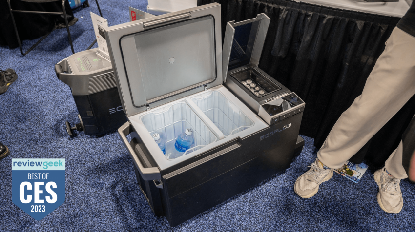 EcoFlow Glacier Cooler – холодильник на батарейках со встроенным резервуаром для хранения воды и льдогенератором. Устройство герметизировано, при этом может работать до 24 часов без подзарядки.