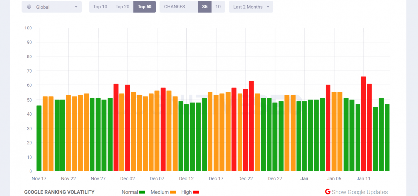 Как отмечает издание Searchengines, всплески волатильности были не особо частыми, и это видно из графиков ниже. Западные вебмастера также сообщили, что не заметили чрезвычайного влияния данных апдейтов Google.