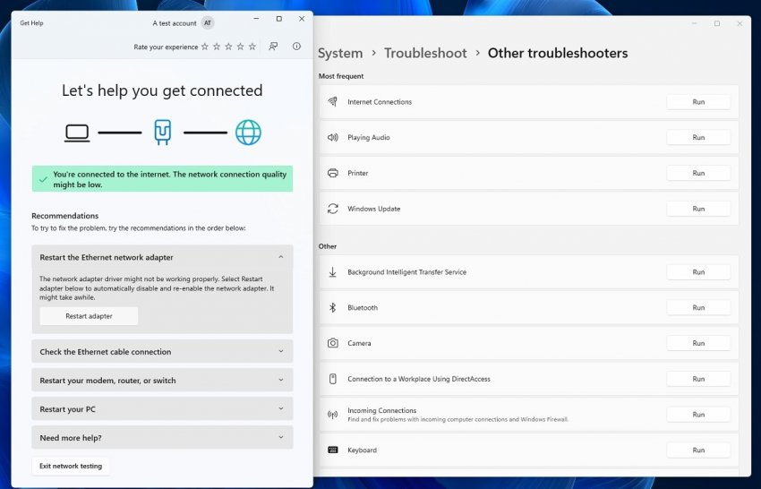 Инструмент добавлен в ОС Windows 11, где стал частью приложения Get Help. Он основан на API, при этом может решить 30 наиболее частых проблем с интернет-подключением (список проблем будет пополняться).