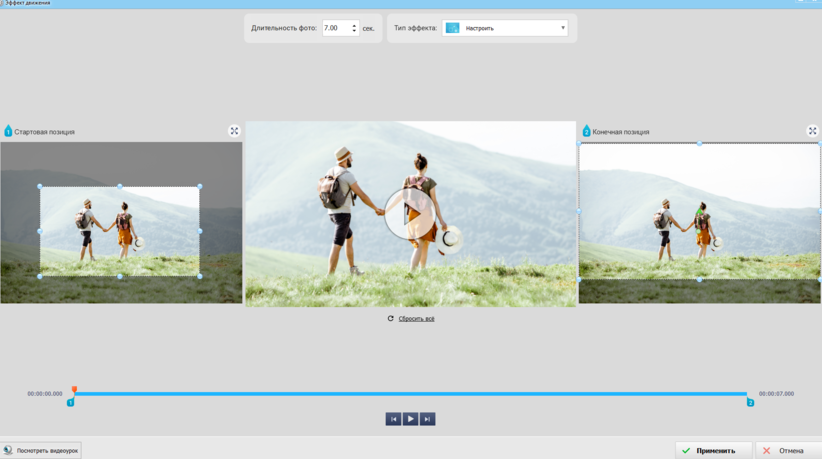 Теперь предстоит плавно соединить кадры между собой. Если оставить все как есть, то смена одной картинки на другую может оказаться слишком резкой. Стандартная длительность перехода – 2 секунды. Не делайте переходы слишком короткими, иначе смена кадров не будет выглядеть естественно, может возникать черный экран или статичное изображение.