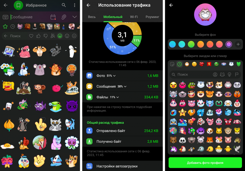 - Конструктор аватаров. В мессенджере теперь можно превратить в фотографию личного профиля, группы или канала любые стикеры и эмодзи. Такие аватары пользователи смогут устанавливать как себе, так и другим контактам или чатам при их редактировании. Эта функция доступна всем, включая тех, у кого нет подписки.