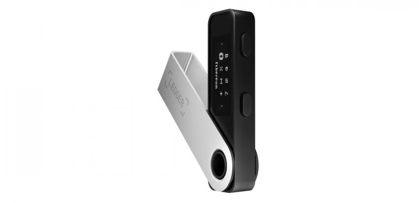 Далее предлагаю остановиться на моделях от Ledger Nano. Данный производитель холодных кошельков представляет несколько разных вариантов, отличающихся по дизайну и доступным функциям. Популярнее всего на текущий момент считается Ledger Nano S. Это небольшой кошелек, очень напоминающий флешку и подключающийся к компьютеру без использования дополнительных кабелей.