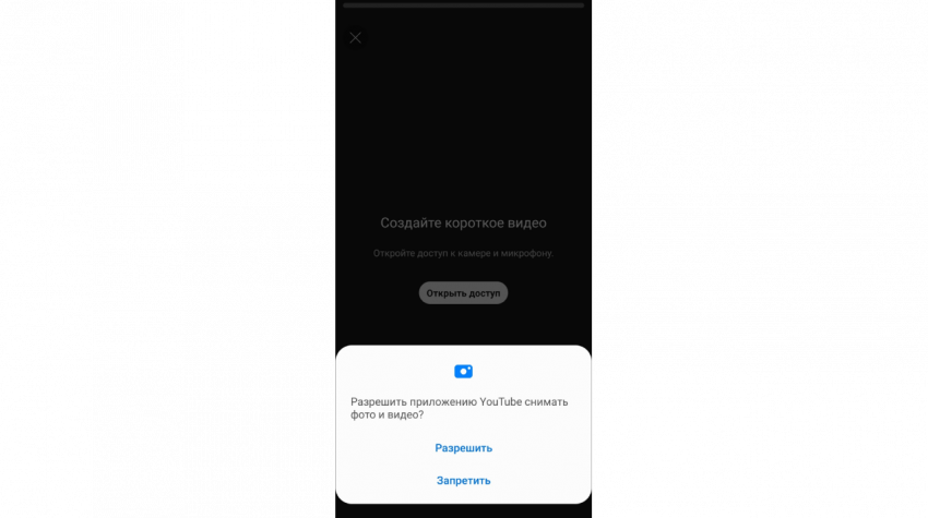 Запустите мобильное приложение YouTube, нажмите на кнопку со знаком «+» в центре нижней панели и выберите пункт «Создать Shorts». При первом использовании этой функции необходимо разрешить приложению доступ к камере и микрофону.