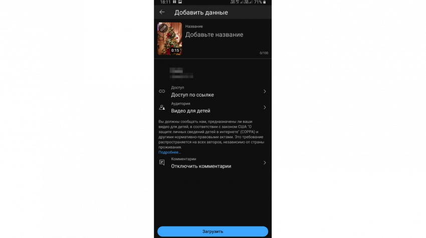 В разделе «Комментарии» можно разрешить или запретить пользователям оставлять комментарии к вашему ролику. Когда все будет готово, нажмите кнопку «Загрузить» внизу экрана.
