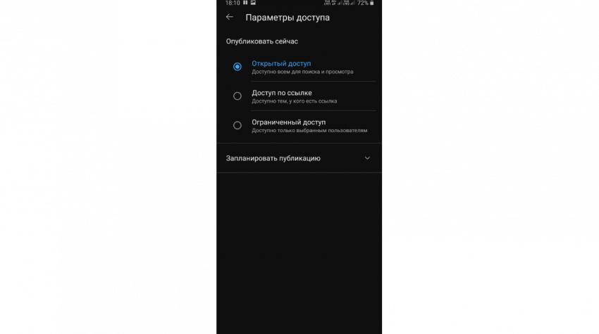 Далее следует выбрать тип доступа: открытый (то есть видео будет доступно всем), по ссылке (доступно только тем, у кого есть ссылка) или ограниченный (для выбранных пользователей).