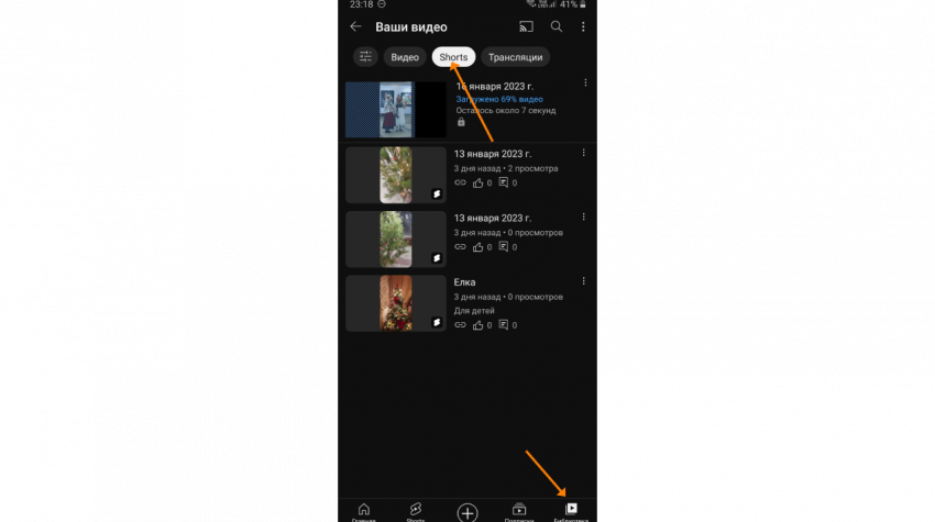 Новый короткий ролик будет опубликован на вашем канале. Чтобы посмотреть загруженное вертикальное видео, откройте в приложении YouTube раздел «Библиотека», затем выберите «Ваши видео» и перейдите в категорию «Shorts».