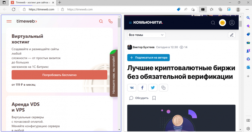 ✔В браузере Edge стала доступна функция Split Screen - «Новости мира Интернет»