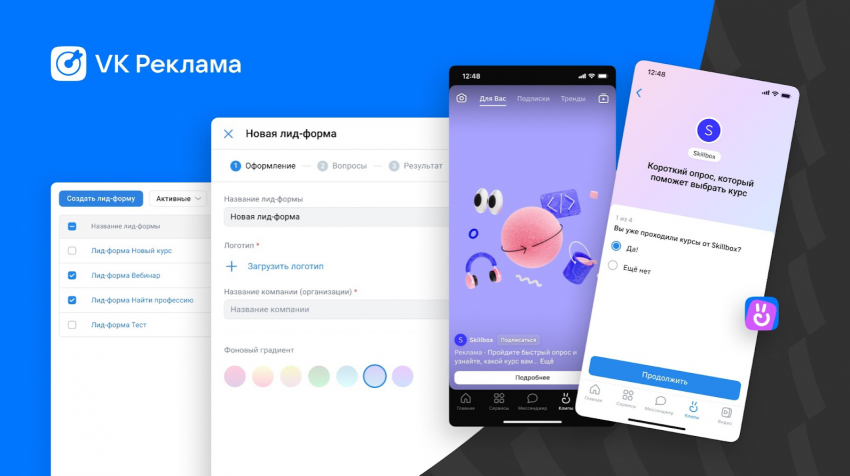 Платформа VK Реклама в декабре прошлого года запустила новый инструмент продвижения – лид-формы, с помощью которых можно получить заявки или заказы и проанализировать интересы аудитории. Сейчас же возможности инструмента расширены, и для сбора контактов потенциальных клиентов стали доступны VK Клипы, сообщает Sostav.